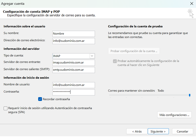 Completar con sus datos, cambiar donde dice sudominio.com.ar por su dominio real